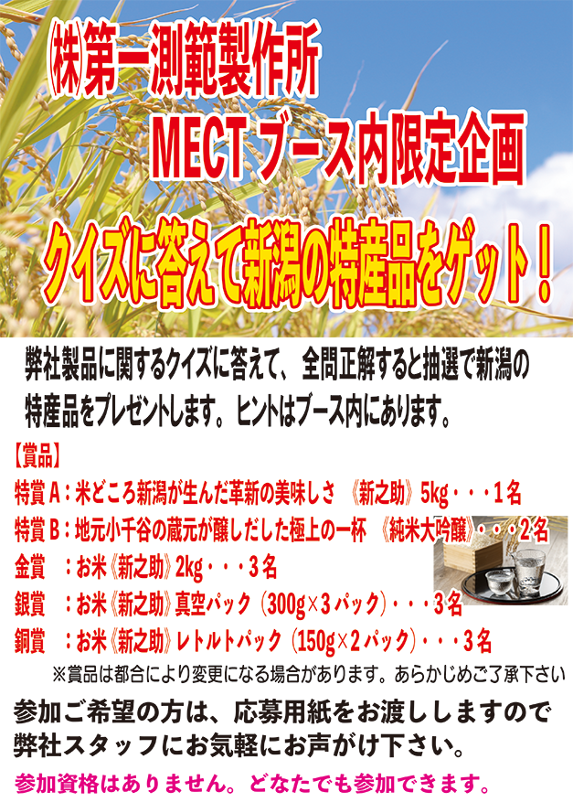 メカトロテックジャパン2025(MECT2025)期間中、弊社ブース内において『クイズに答えて新潟の特産品をゲット!』と題したオリジナルイベントを開催いたします。